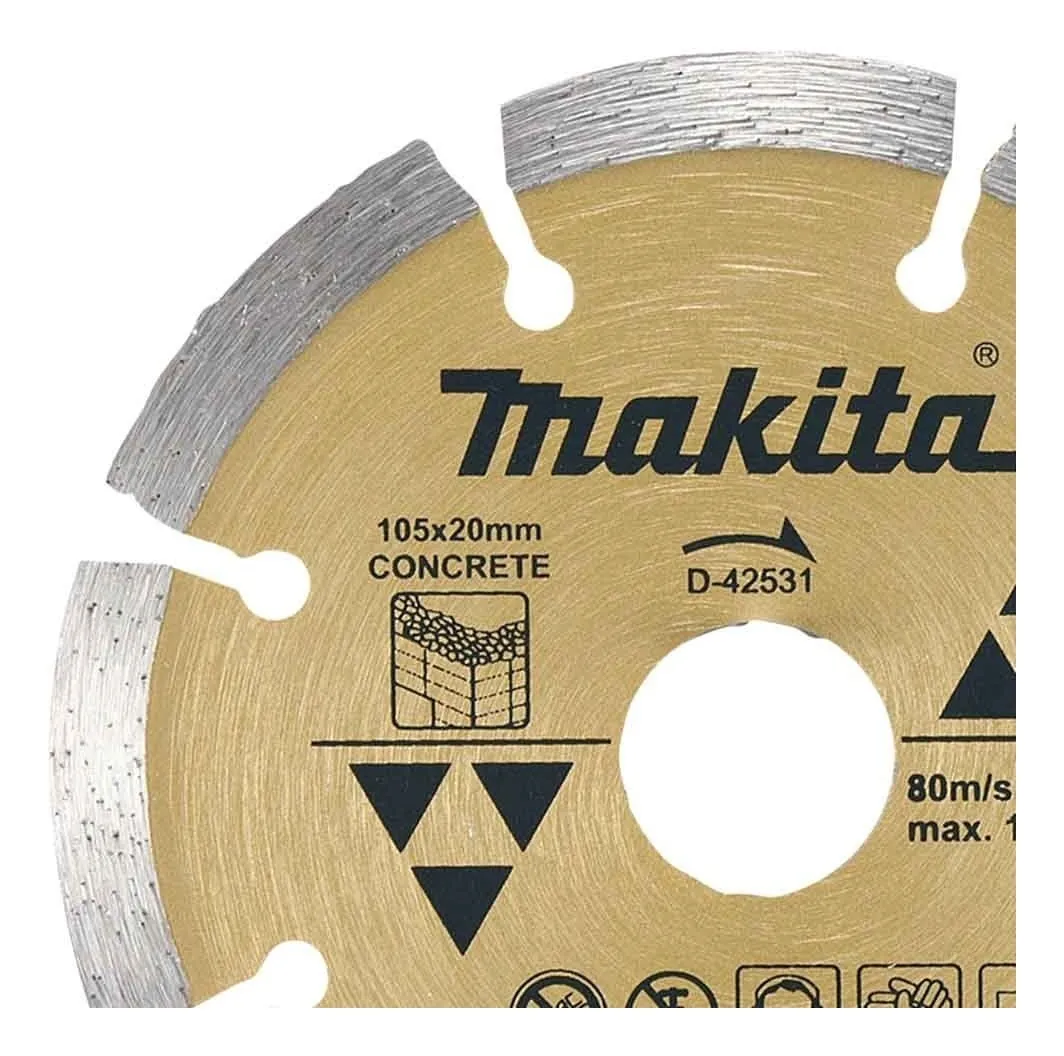 O Disco diamantado segmentado 105 mm para concreto e alvenaria D-42531 da Makita, é uma ferramenta essencial para quem busca realizar cortes precisos e eficientes em diversos tipos de materiais, como concreto, alvenaria, tijolos e telhas.